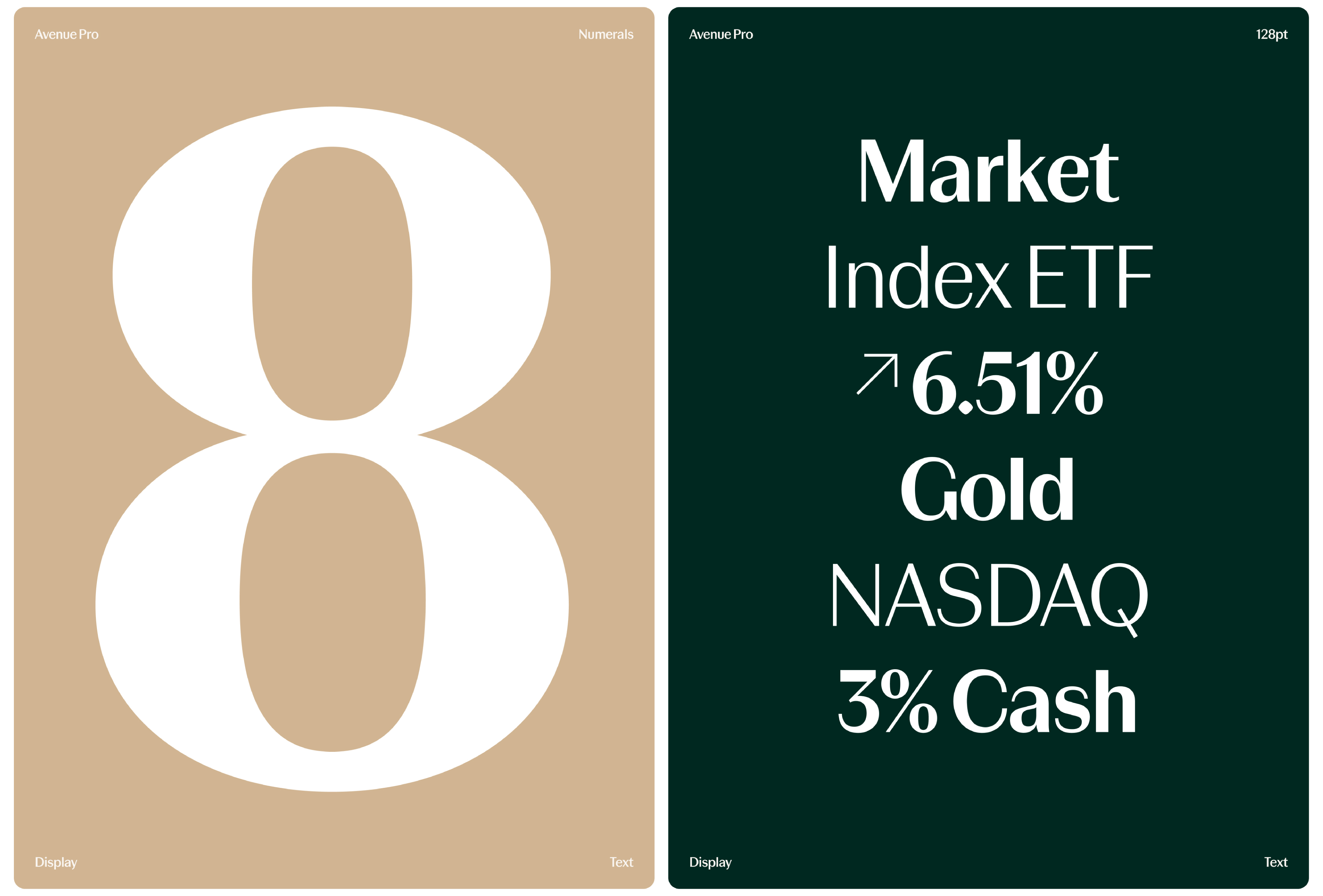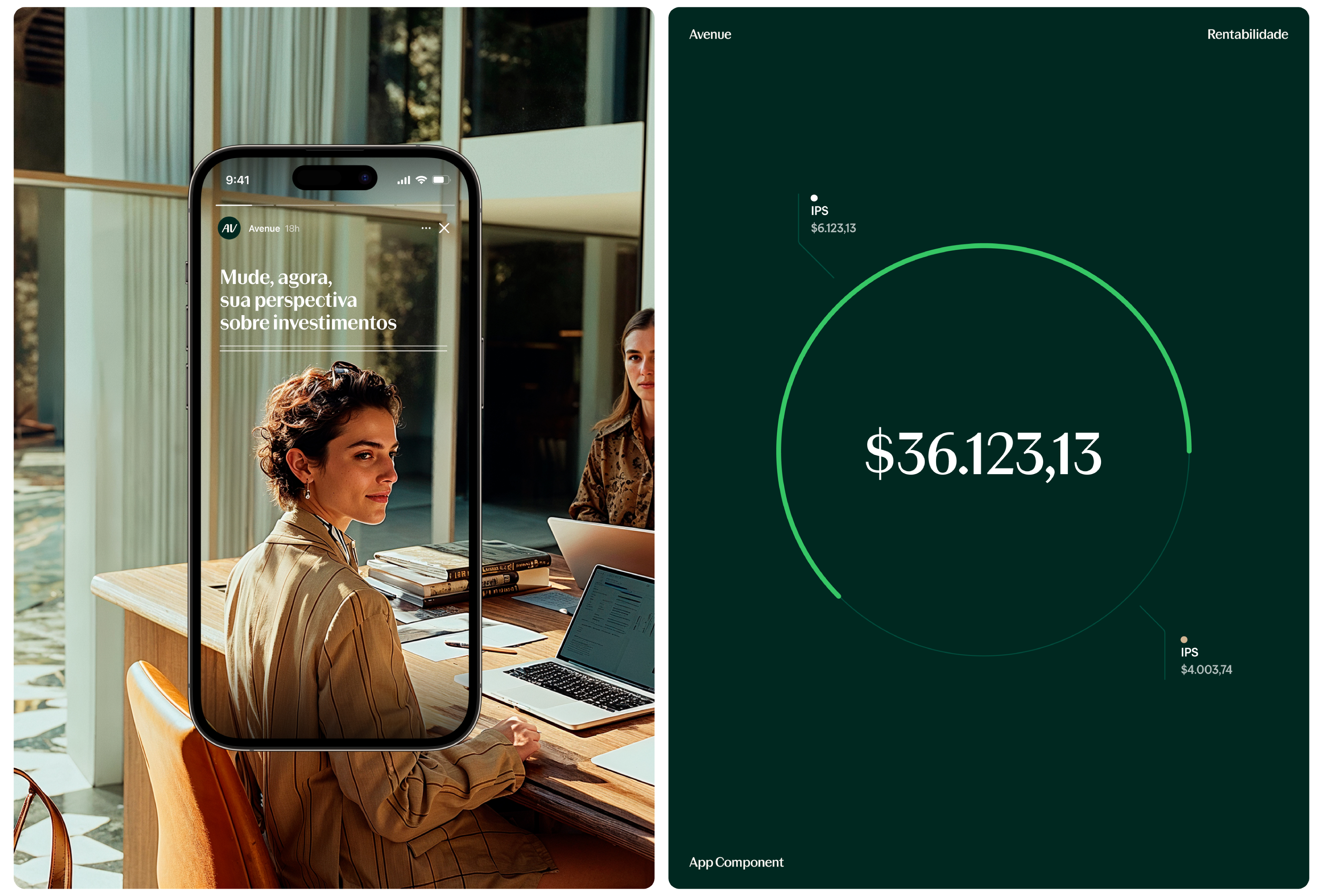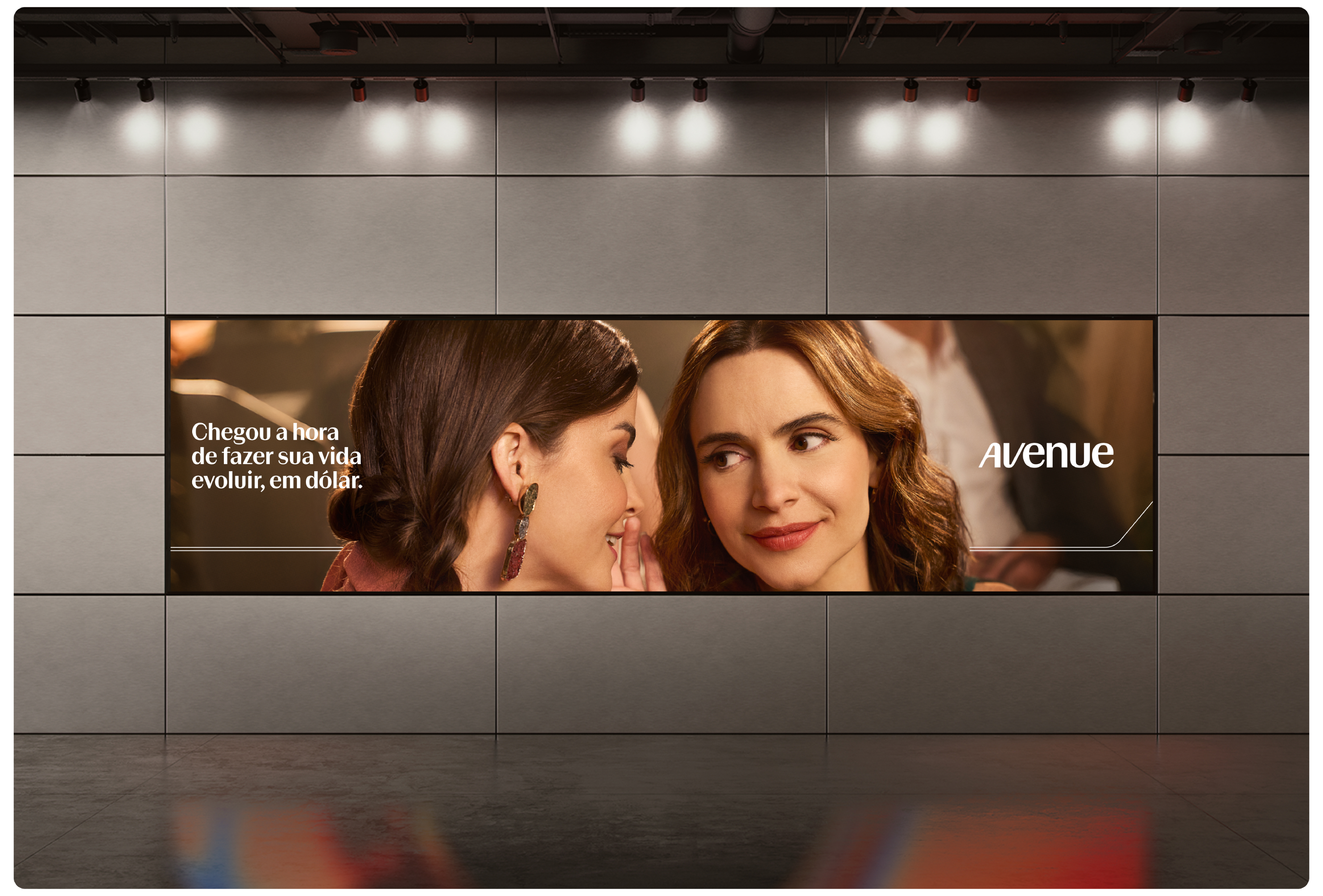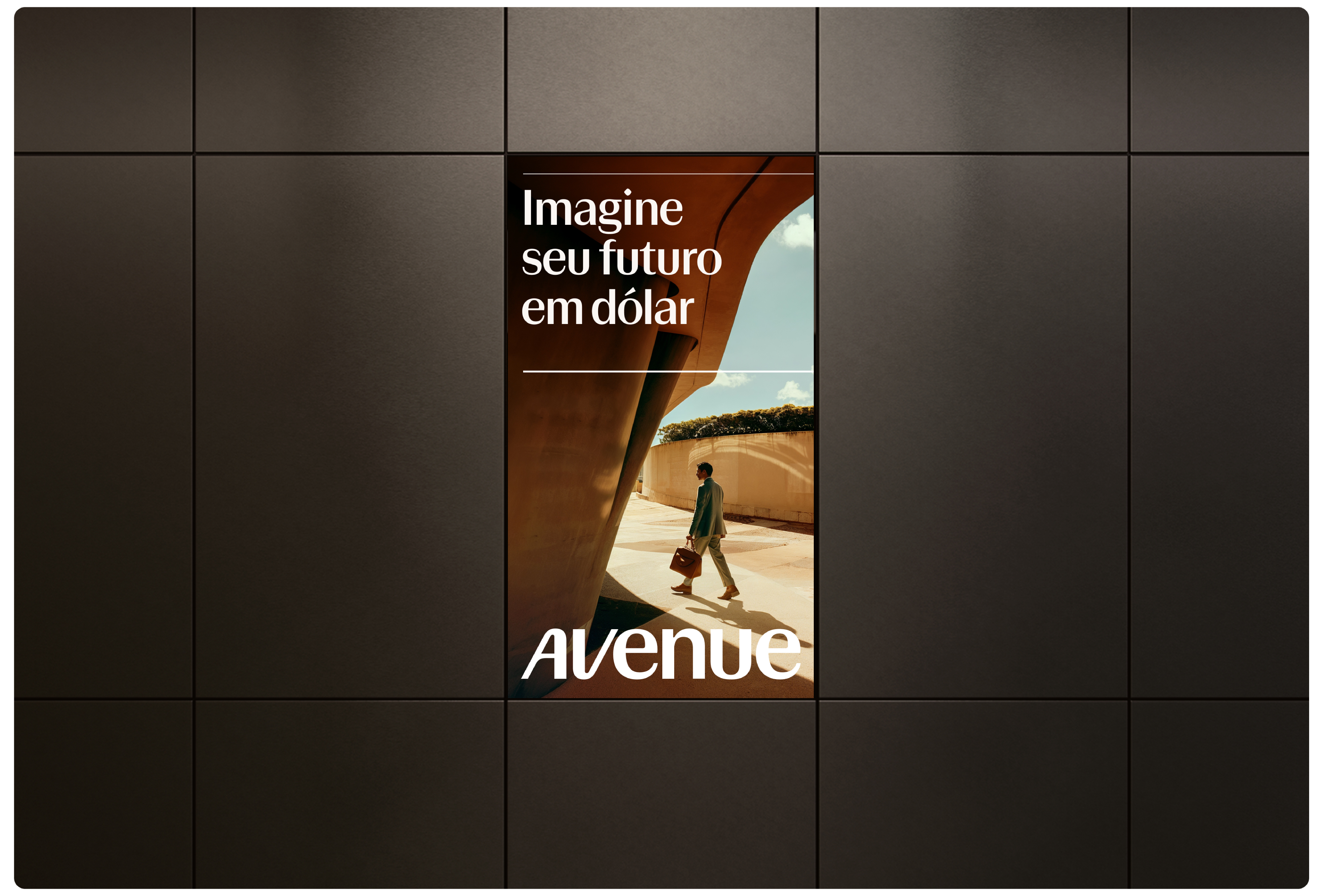 Com sete pesos e itálicos correspondentes, o sistema tipográfico da Avenue foi projetado para transitar com fluidez por todos os pontos de contato da marca — de aplicativos móveis a outdoors, de painéis de investimento a campanhas publicitárias. O resultado é uma identidade baseada em tipografia que dá vida ao empoderamento financeiro, ajudando a Avenue a contar uma nova história: uma história de verdadeira evolução, agora em dólares
