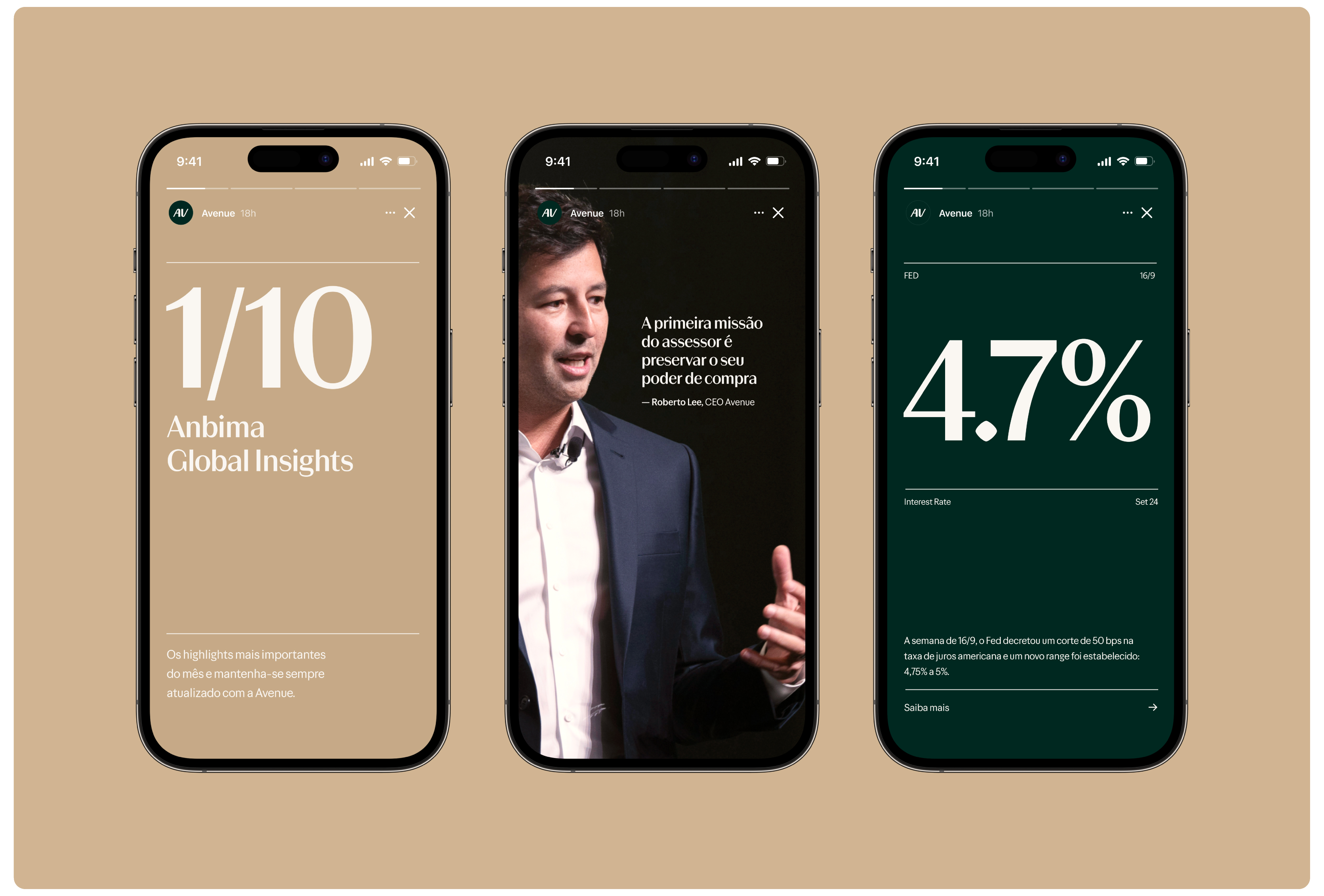 A iN Marcas convidou a Plau para liderar a evolução visual da Avenue, desde o refinamento do logotipo até a criação de um sistema tipográfico coeso e expressivo. O objetivo era trazer distinção e clareza à voz da marca — uma voz que precisava ser elegante e confiante, mas também clara e acessível.
